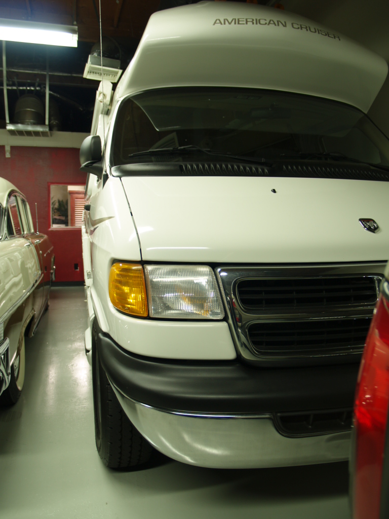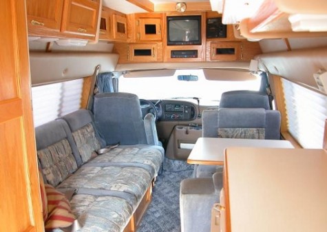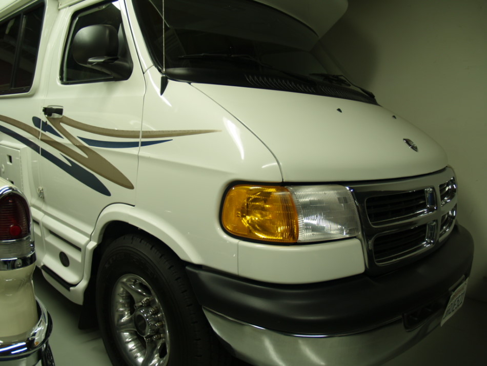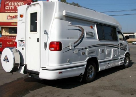 2001 American Cruiser RE2000 19' Class B self-contained mini-motorhome custom built with fiberglass body and raised roof to accommodate tall persons on easy to drive and park Dodge Ram Chassis, 5.2 Liter, 360 V8, unleaded gasoline, perfect mechanical condition, only one in existence with this low mileage 13,035, once in a lifetime find, warehoused most of thirteen years, driven three times per year, passed smog check every two years with identical results, highly sought after model featuring full-sized rear entry double locking door with draped window, locking screen door and automatic double steps, private left rear lighted bathroom with corner sink, hot and cold water faucet, toilet and shower with skylight opposite right rear kitchen with linoleum floor, stainless steel sink, Norcold refrigerator with freezer (works with auxiliary batteries, regular power 120, or propane by turning dial to desired source), stove and overhead microwave, wall-mounted air conditioner in addition to in-dash factory air conditioner, ceiling fan at rear between kitchen and bathroom, superior quality oak cabinets, ample storage throughout, tall closet, 13" color television above VCR mounted in cabinetry overhead behind captain's chairs facing living area, dinette behind passenger chair converts to a bed, sofa behind driver's chair folds down into a bed, wide-view windows along each side framed by beautifully upholstered thick pads with full privacy solid-fold blinds, AM/FM/CD stereo system and speakers overhead, AM/FM/Cassette Stereo in dash, every inch stock original, designed to maximize space, outstanding feat in engineering! Awnings each side (11' passenger side, 6' driver's side), exterior storage compartments, serviced regularly with genuine parts, battery compartments maintained, new battery, cables and disconnects, new generator batteries, cables and disconnects, easy to use electric Onan Micro Quick 4.0 KW gasoline 33.3 amps generator starts easily and operates perfect with flip of switch near passenger chair, power converter with battery charger (Magnetic Series 6300A, Model 6332) 32 amps behind passenger chair, driver's door with power windows and locks, cruise control on tilt steering wheel, white exterior full body paint in excellent condition with attractive gold and blue boomerang graphic, smoke-free soft tan and blue carpeted interior, best year body style 2001, 19' 11" with rear mounted spare tire and stainless steel cover, 105" high, 81" wide (add 8" each mirror) Michelin Radial RV tires LT245/75R16, Aluminum RV Wheels, Current Registration, Clear California Title, vin #2B6LB31Z6YK153518, Compare with pricey Chinook, Private Party, 2nd Owner. |